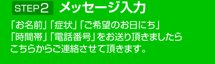 ※施術中は電話に出られませんので留守番電話にお名前と電話番号を伝言下さい。