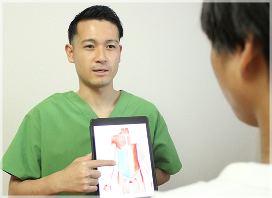 痛みの原因を突き止めるために、親身になって徹底的にお話を伺います。