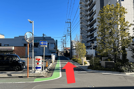 4セブンイレブンさんが左側に出できます。そのまま真っ直ぐに進みます。