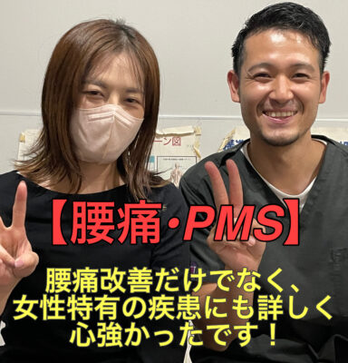 細かいところまで話を聞いてくれて、話しやすいですし、治療自体もいままで受けてきた施術よりソフトでよかったです。